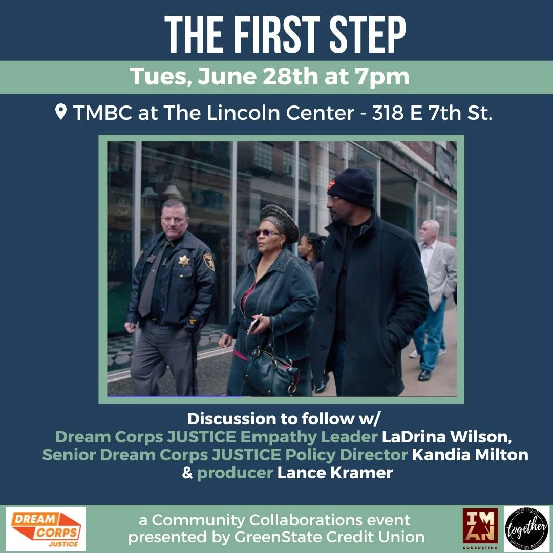 THE FIRST STEP screens at TMBC at the Lincoln Center in Davenport, Iowa, with a post-screening discussion with producer Lance Kramer and Dream Corps JUSTICE Policy Director Kandia Milton. Panel moderated by LaDrina Wilson, Dream Corps JUSTICE Empathy Network Leader for Iowa.